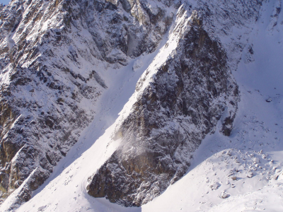 Ze štrbiny můžeme sestoupit rovnou dolů velmi lámavým žlabem 2 (spodní část je možné slanit o skalní hrot vlevo - je potřeba vlastní smyčka). Sestup je vhodný, pokud je žlab zasněžený. Pokud je sucho, výhodnější sestup vede po hřbítku vpravo od žlabu 1. Jedná se o nástupovou/sestupovou variantu Dubkeho lávky. Celkem trvá sestup až na Téryho chatu 1-2 hodiny.