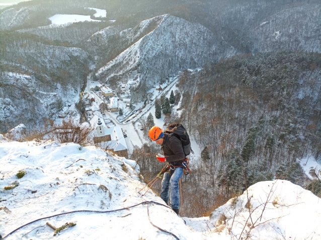 Svatý Jan pod Skalou. Začátek slanění od Kříže.