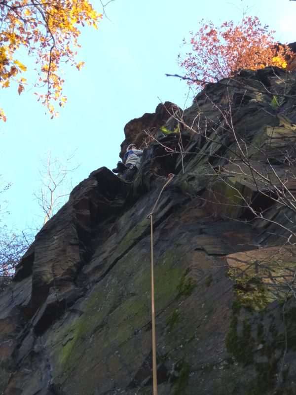 Skalní lezení u Zákolanského potoka ve středních Čechách.