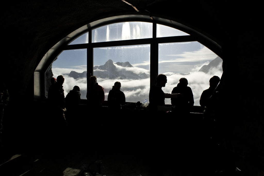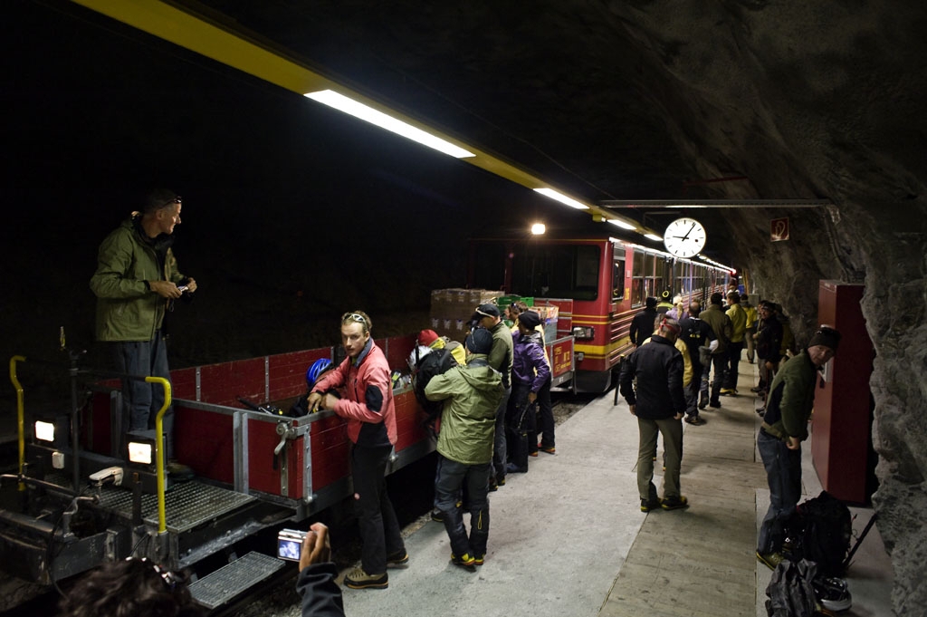 Vlak stoupá do výšky 3454 m n.m. tunelem v severní stěně Eigeru.