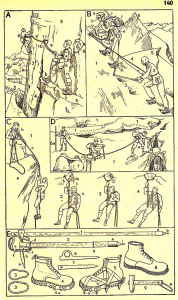 V důkladném tlustospisu došlo na horolezectví už na stranách 254 a 255. Takový význam přikládali autoři výstupům v horách, technice lezení a vybavení horolezců.