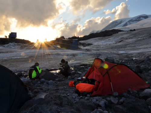Ráno jsme vstávali v půl čtvrté, na hlavu nám padal led z omrzelého stanu. Když jsme vykoukli ven, všude svítily čelovky.