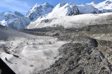 Obrovský zával blokuje přístup k několika chatám SAC. Směs ledu a kamení úplně znemožňuje příchod na chaty Coaz Chamanna a Tschiervahütte. Nepřístupné jsou všechny trasy přes ledovec Tschierva.