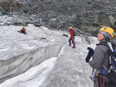 Velká pole chaotických trhlin se v létě pravidelně otevírají pod Luisenscharte, pod Teufelskamp a pod Romariswandscharte. Na ledovci si ovšem už není jistý horolezec vůbec nikde. Pevná sněhová pokrývka rychle mizí.