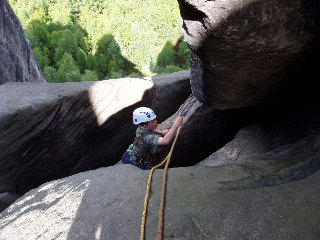 Falkenstein, Schusterweg, výlez od Spodního koně na 4. štand.