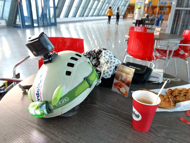 Helma Edelrid Madillo + čelovka Petzl + kamera GoPro na nádraží Poprad Tatry.