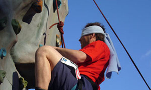 Umělá stěna byla v neustálém obležení lezení chtivých lidí. Nejodvážnější vidící sportovci si nechávali zavázat oči a vydávali se do vertikály tak, jako jejich nevidící kolegové.