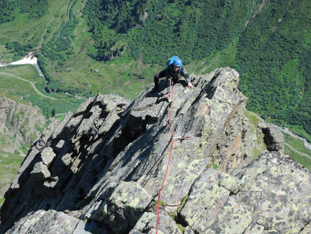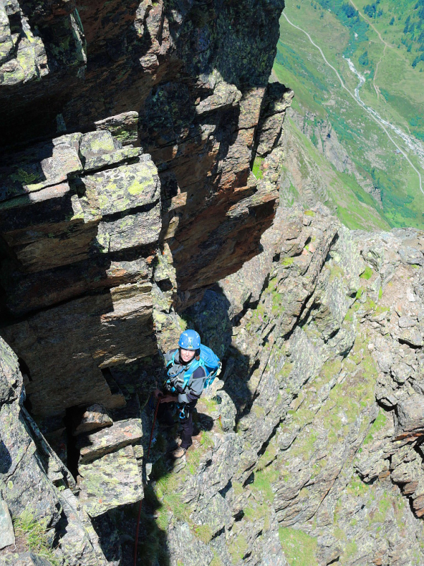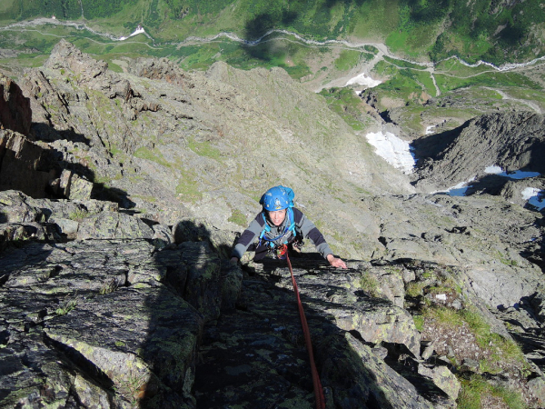 Dolní část NO-Grat na Patteriol se lze ve skalách obtížnosti 2-3 UIAA.