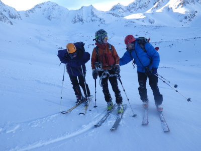 Orientace na této túře je jednoduchá. Údolím stále vzhůru až na sedlo. Na závěr se držíme spíše vpravo u potoka, protože traverzování strmých svahů zabere hodně času a zároveň vede nebezpečným lavinovým terénem.