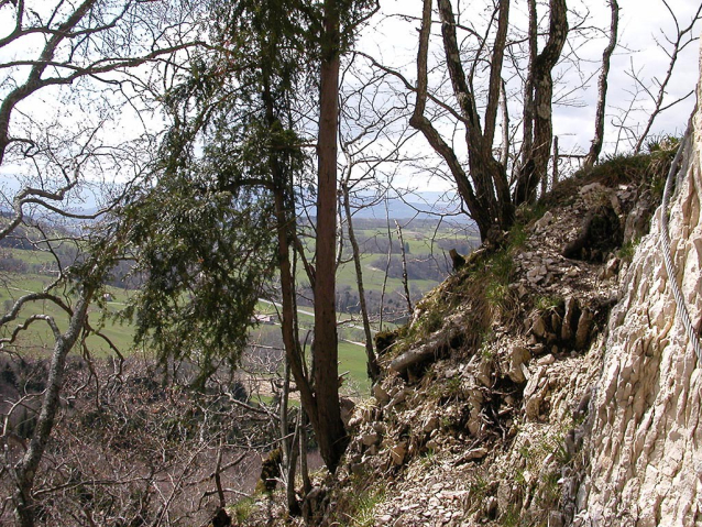 Pomier, feráta, chodníček s ocelovým lanem.