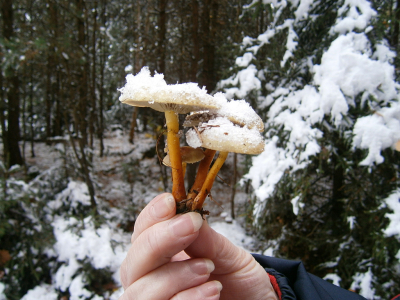 Už je to tu definitivně. Houby mají sněhové čepičky. Ve francouzských Vogézách si musíme počkat pár měsiců na nějakou čerstvě vyrostlou houbičku. Za to brzy vytáhneme lyže a běžky a roztočí se kola vleků. Ke kuchyňským aktivitám v těchto zimních měsících použijeme tedy jenom houby nasušené anebo zmražené.