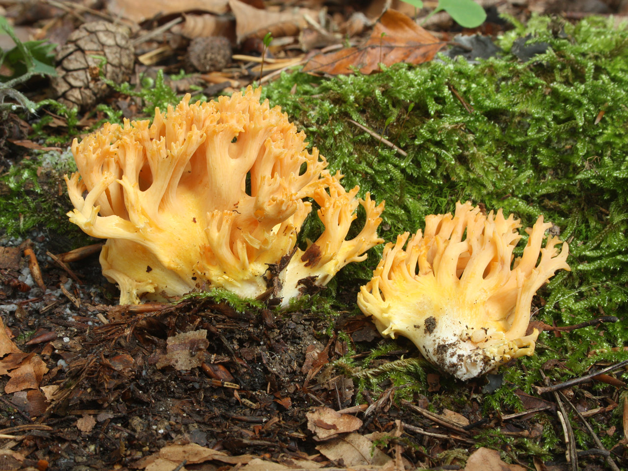 Pěkný sírovec žlutooranžový roste u Zlaté stoky v Třeboni.