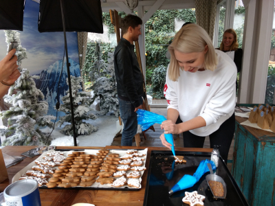 Mezi tím upečené perníčky zcela vychladly. Opatrně, ale při tom rychle a bez přerušení zdobíme každý perníček. Buď podle vlastních nápadů, nebo se necháme inspirovat jinými perníkářkami, anebo rovnou využijeme vzory, které najdeme v kuchařkách, časopisech nebo na internetu.