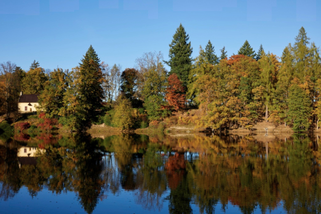Červená Lhota, podzim na Zámeckém rybníku.