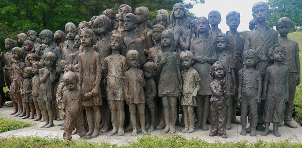 Lidice. Kostel z roku 1309 nepřežil nacistické řádění roku 1942.