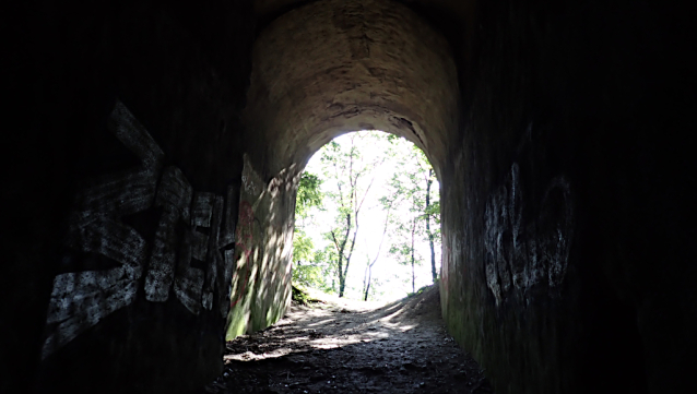 Tunel pro pěší vede do tunelu pro vlaky mezi Kralupy a Nelahozevsí.