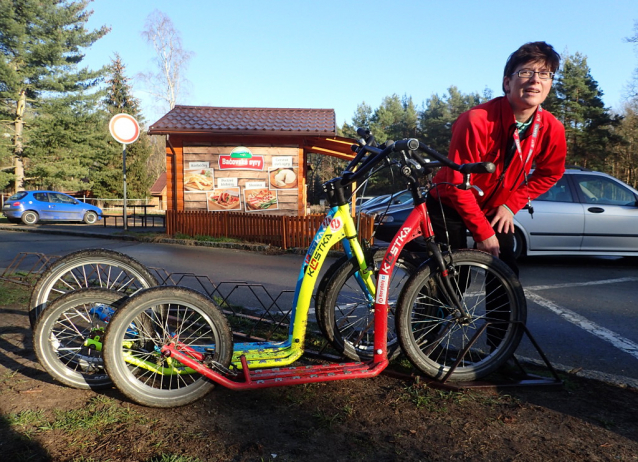 Tři koloběžky Kostka v Hradeckých lesích.