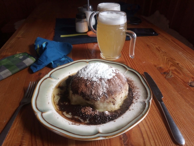 Buchty na pare neboli ovocný knedlík a pivo na chatě Pri Zelenom plese, Vysoké Tatry.