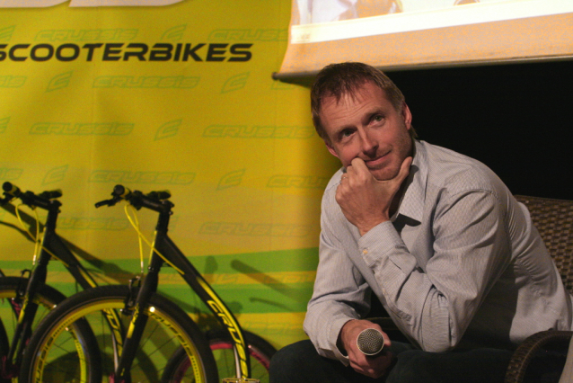 Biatlonový reprezentační trenér Ondřej Rybář na besedě s fanoušky svého sportu v Lanškrouně..