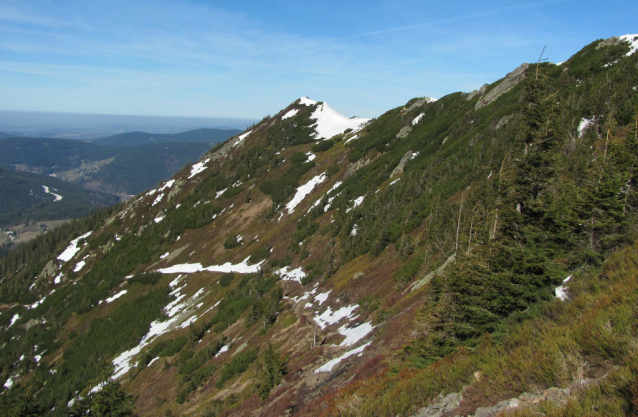 Kozí hřbety. Na jihu už není sníh, ne severu se dá ještě lyžovat.
