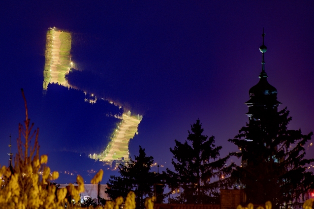 Ještěd, osvětlená sjezdovka Nová Skalka.