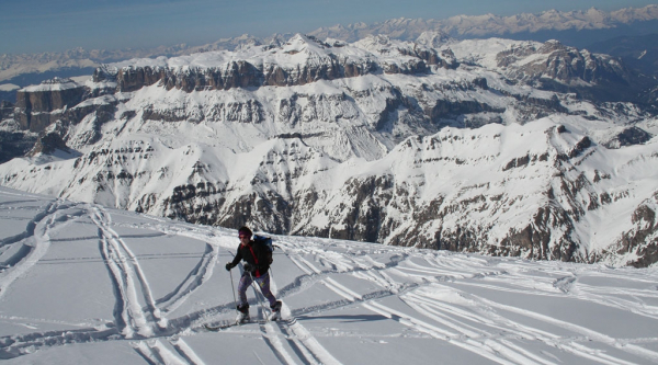 Lyžování v Dolomitech. Sjezdovky a freeride.