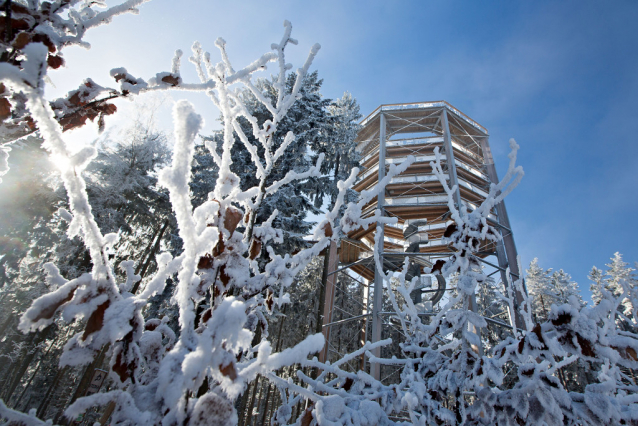 Lipno. Když leží sníh jen na vrcholcích hor, jezdí se na kole po cyklostezce.