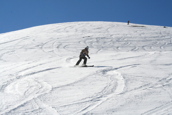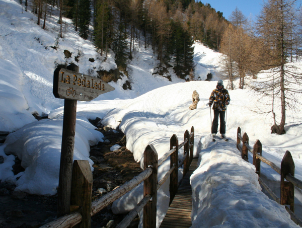 Livigno. V údolí Vallaccia se projíždí mezi domy, které jsou obývané jen v létě.