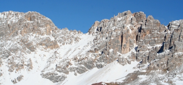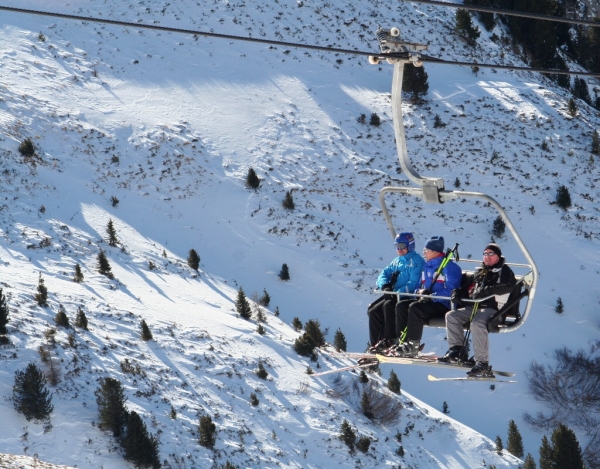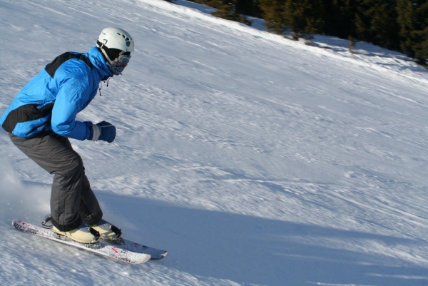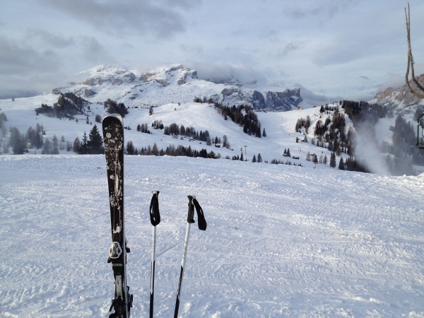 Dolomity, Moena, široké a mírné sjezdovky pro začátečníka na snowboardu.