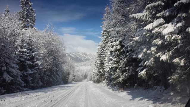 Štrbské pleso, perfektně upravené stopy pro běžkování.