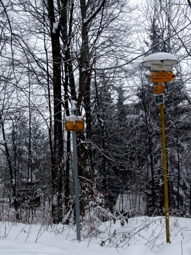 Beskydy. Rozcestí Plenisko u chaty Kozinec.