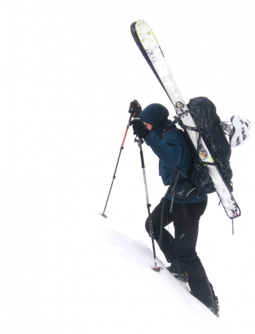 * Skialpinistická výbava: lyže, pásy, hole, boty, lyžařské brýle, přilba (dle uvážení)