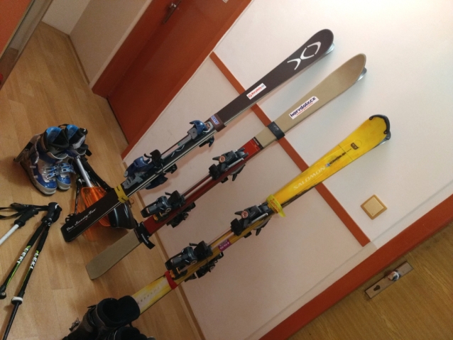 Improvizovaná lyžárna ve sklepě paneláku.