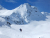 Sjíždíme k ledovci, krusta je čím dál nepříjemnější a nafoukaného sněhu přibývá, zároveň se otepluje. Lavinová situace je už povážlivá, a tak poslední stovku metrů na dno údolí jdeme raději pěšky kolmo dolů, abychom neuřízli těžkou sněhovou masu.