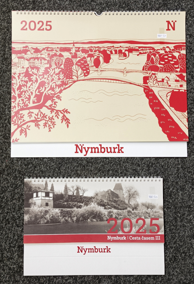 Nymburk, kalendáře 2025. Grafika Lucie Trejbalová, archiv Jan Řehounek.