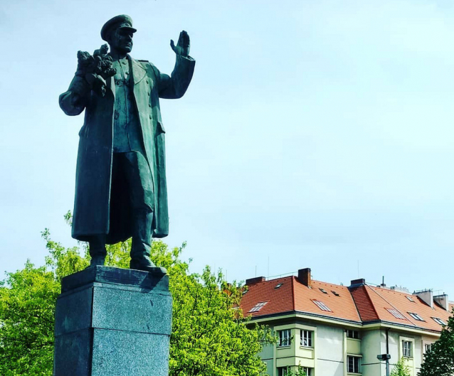 Ivan Stěpanovič Koněv, socha na náměstí Interbrigády, Praha-Bubeneč. Dílo autorů Zdeňka Krybuse a Vratislava Růžičky bylo odhaleno roku 1980.
