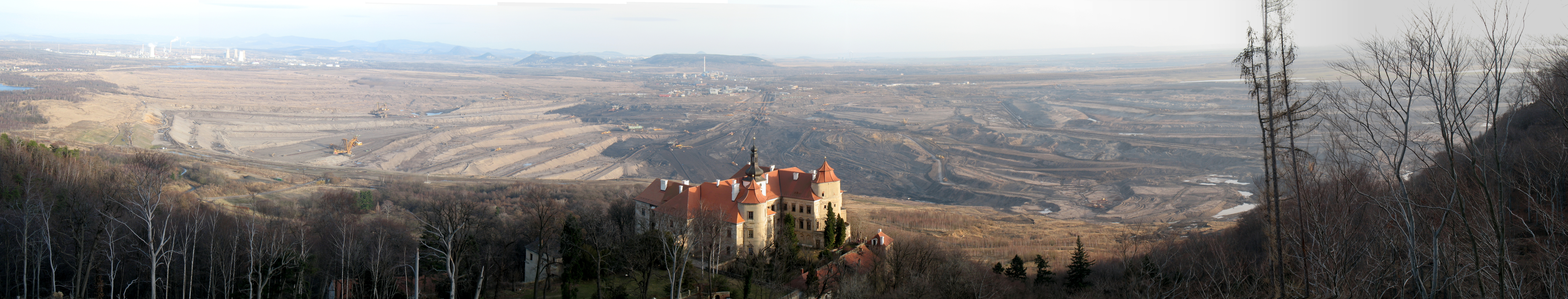 PANORAMA Jezeří, bývalé Komořanské jezero pod zámkem