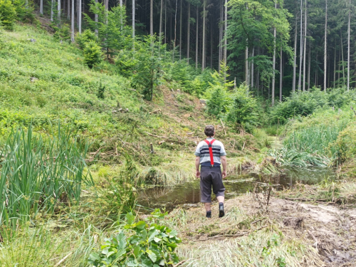 Ahinsa Hiker s sebou bereme také a vodu. Na jednoduchých řekách se nemusíme přezouvat do vodáckých neoprenových botiček a stačí nám jedny botky pro pobyt na břehu i do kajaku. Naposledy jsme spluli dolní Mži.