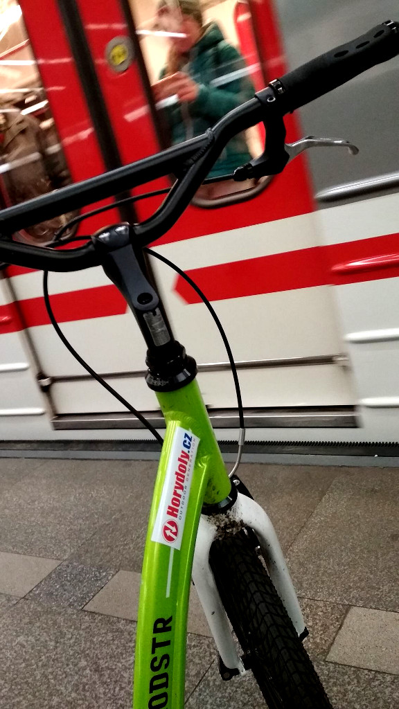 Výlet na koupací molo Hostivařská přehrada: kolobežka Yedoo Rodstr, cyklobatoh Boll Nomad a láhev s pitím Hydrapak Stash.