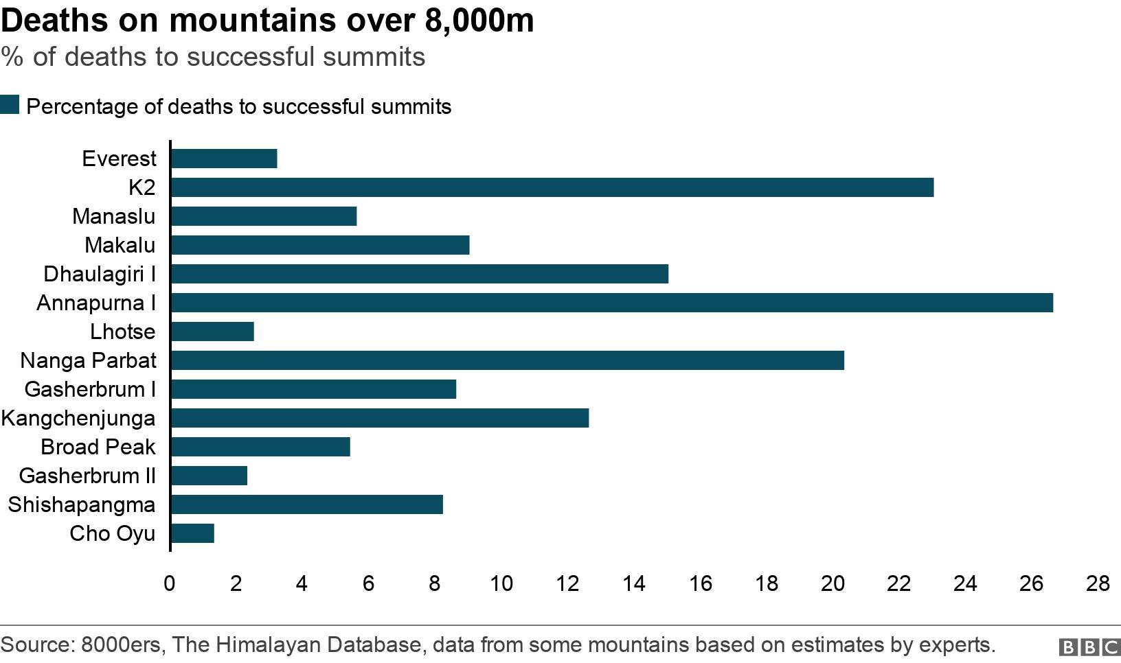 Tady je aktuálnější graf míry mortality. Pořadí třech nejnebezpečnějších hor světa se nikterak nemění bez ohledu na celkové počty výstupů.