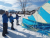 Na zasněžené pláni, po které se valí husté mraky, už v 10 hodin začínají nafukovat velkou vzducholoď. Na zemi ji drží jen dva lidé pomocí lan připevněných k jejímu nosu.