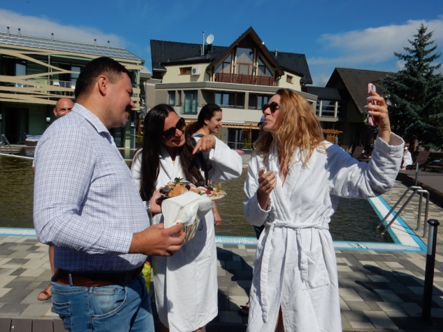 Vodný park Bešeňová. Když se ředitel Róbert Šmitala baví s instagramerkou Nikol Moravcovou.