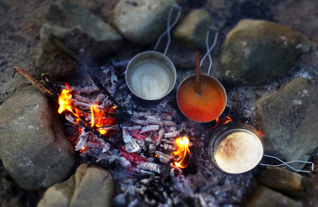 Spaní připravíme na uležené zemi u velkého ohniště pouhých padesát metrů od trojmezí. U hraničního kamene večeříme maliny, meloun a buchtu.