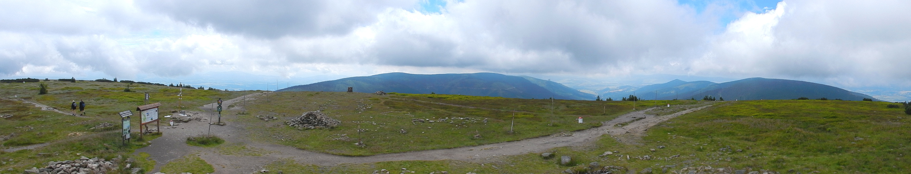 Z hraniční cesty na chvíli zabočíme do Polska k chatě Na Sněžníku, kde se nachází pěkné přístřešky na nocování, ohniště i kovový bývalý větrník. Do půl hodiny jsme na vrchu Králického Sněžníku (1424 m). Třetí nejvyšší hora České republiky byla dobyta v poledne. Vrchol je holý a na nejvyšším místě stojí hromada kamenní po bývalé rozhledně. Vylezeme na ni a objeví se krásné výhledy do všech světových stran.