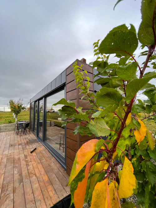 Obytný kontejner v meruňkovém sadu uprostřed moravských vinic stojí v Čejeticích pouhých 40 kilometrů od Brna. Moderní úsporný design poskytuje nerušený výhled do utěšené krajiny a malebnou vesničku. Připojená není elektřina ani Wi-Fi. Tady uniknete každodennímu shonu. Výhled zajišťuje prosklená stěna, teplo dávají kamna, kávu a sklenku vína vychutnáte pod stromy přímo v sadu. Glampingový kontejner je vybaven postelí, gaučem, malou kuchyňkou, toaletou a venkovní sprchou.