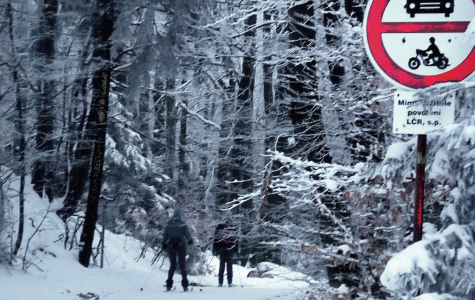 Míjejí nás běžkaři, kteří zde mají krásné možnosti na svůj sport. Ani nás sníh neodrad a pokračujeme po asfaltové cestě s uježděným sněhem, po kterém se pohodlně stoupá. Výstup je v první části docela náročný jelikož jdeme přímo kolmo proti svahu z nadmořské výšky 390 m až do 600 m na pouhých dvou kilometrech.