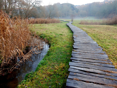 Nejviditelnější je nová povalová stezka přes podmáčenou louku. Můžeme z ní pozorovat život v meandrujícím potoce, rákosí v malých rybníčcích i obhospodařovanou louku ve vlhkém údolí.