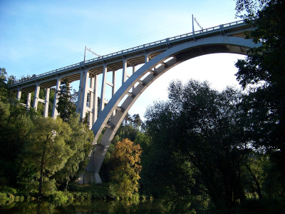 Historické elektrické lokomotivy Elinka a Bobinka patří k jihočeským unikátům. Jedou po dalším klenotu - elegantním mostě Bechyňská duha. Ten byl postaven až později 1928 podle projektu Eduarda Viktory jako železobetonový oblouk nad řekou Lužnicí pro souběžný provoz vlaků a aut.