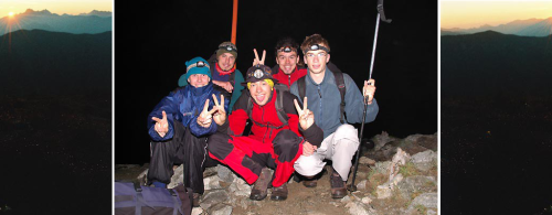 Zářivě zlatavý kotouč nejdříve zvýraznil siluetu hor a konečně vykoukl přes okraje hřebenů. Jeho paprsky začaly hřát a my pomalu rozmrzali. "Dost romantiky, jde se!" někdo z nás prohlásil přesně v 5:27 h. Hurá dolů.