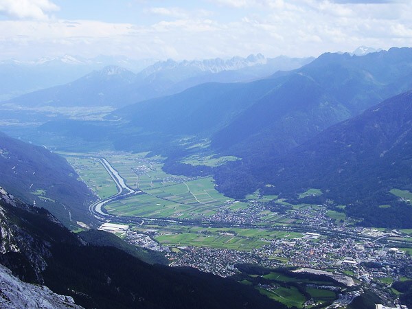 Výstup doprovází po většinu času výhled do údolí Innu.